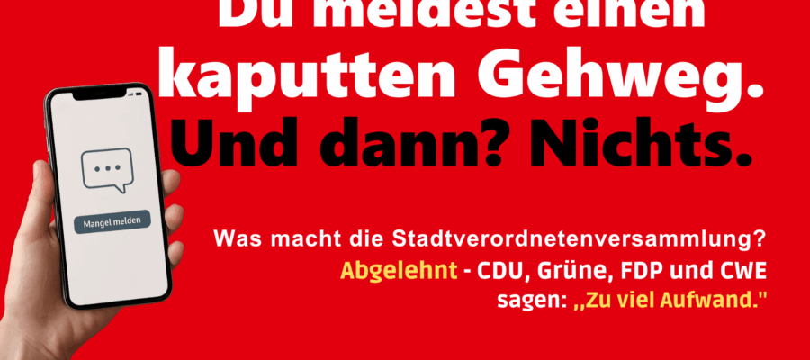 Digitale Mängelmelder in Hünfeld: Chance vertan Mit einem konkreten Antrag hat die SPD-Stadtverordnetenfraktion am 11. September 2025 eine Verbesserung des digitalen Mängelmelders der Stadt Hünfeld